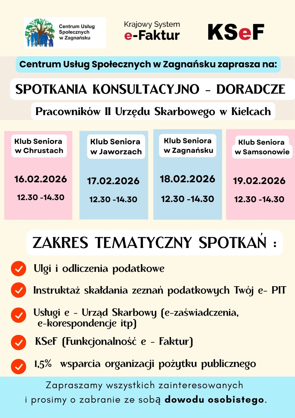 W dniu 12 lutego 2026 roku, w Tłusty Czwartek – zgodnie z piękną polską tradycją wspólnego świętowania i dzielenia się słodkościami – Wojciech Ślefarski Wójt Gminy Zagnańsk wraz z Agatą Sykulską Dyrektor Centrum Usług Społecznych w Zagnańsku odwiedzili Kluby Seniora w Jaworzach, Chrustach, Zagnańsku oraz Samsonowie.